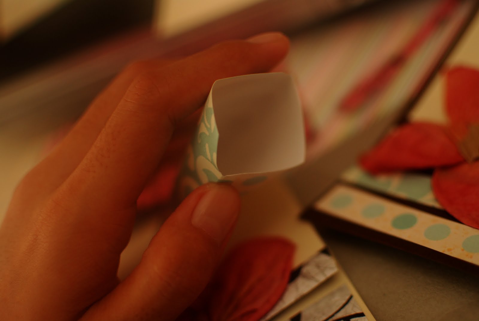 Anyways, of course saying that I like asymmetrical and imperfect things is just my nicer way of saying how lazy I am to pick up a ruler, mark the lines with a pencil and cut it with a sharp blade. After all, it is called scrap, isn't it? I don't really see the need to be so perfect, especially that I'm doing it for fun ;)
